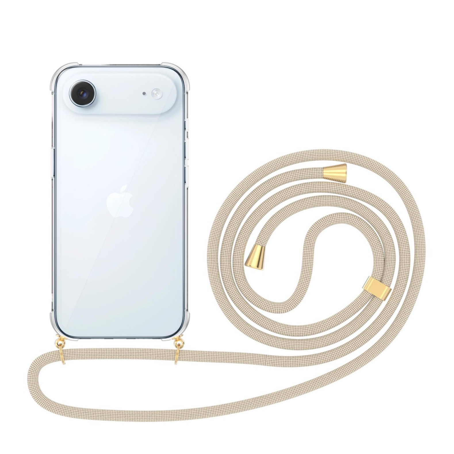 iPhone Air Necklace Gummi Hülle Air Cushion Fallschutz + Handykette (150cm) - Beige / Gold