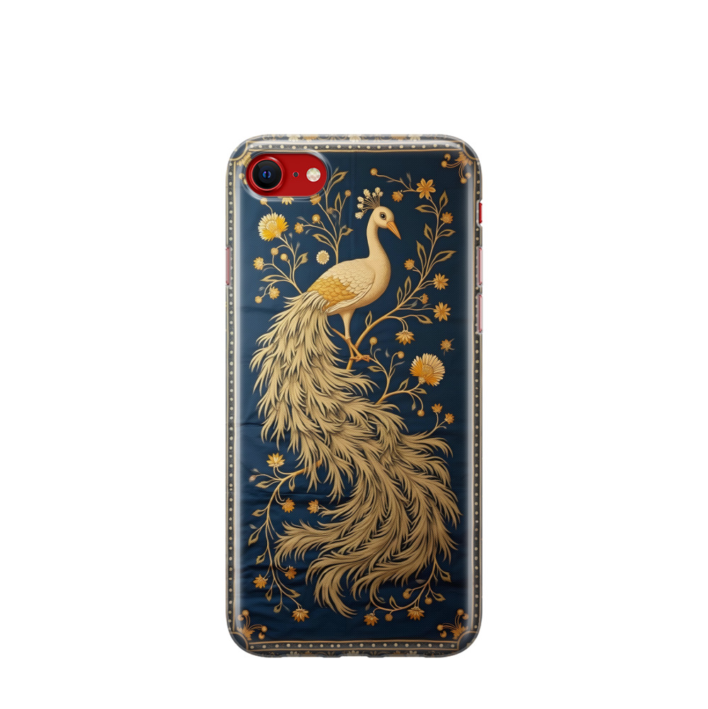 iPhone SE (2020) Gummi Hülle Goldener Pfau des Orients - Blau