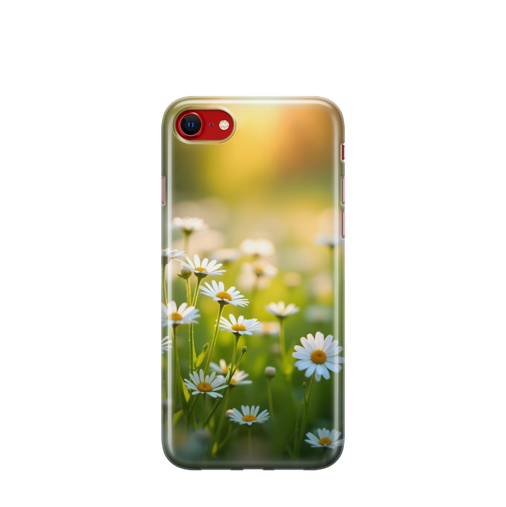 iPhone SE (2022) Gummi Hülle Gänseblümchen im Abendlicht - Grün