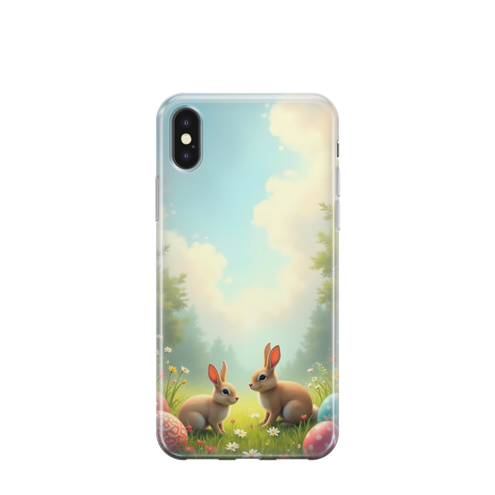iPhone Xs Gummi Hülle Blühender Osterzauber - Beige