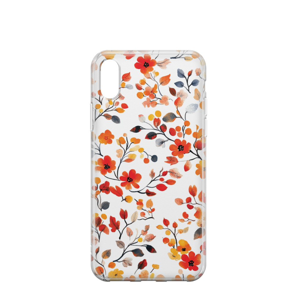 iPhone Xs Gummi Hülle Herbstblüten 01 - Orange