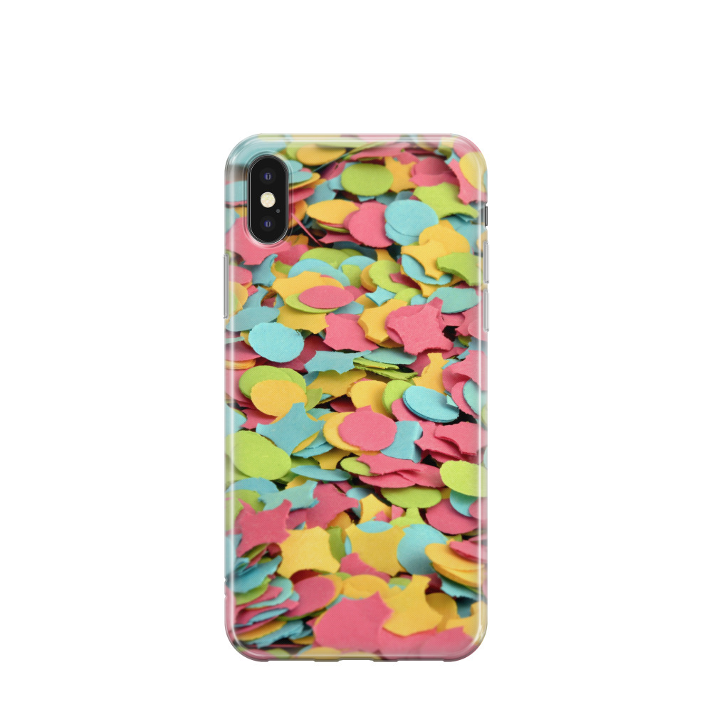 iPhone Xs Gummi Hülle Konfettipracht - Blau / Gelb / Rot