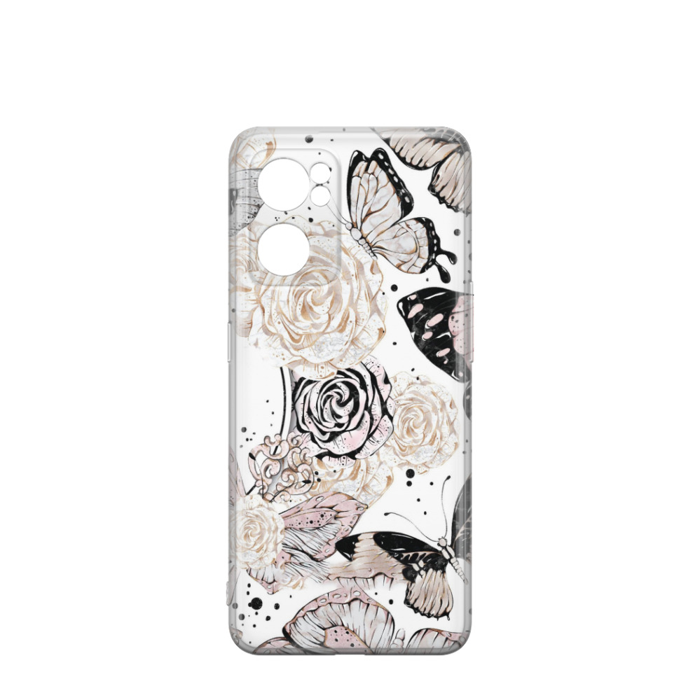 Oppo Find X5 Lite Gummi Hülle Blumen Schmetterling - Weiss