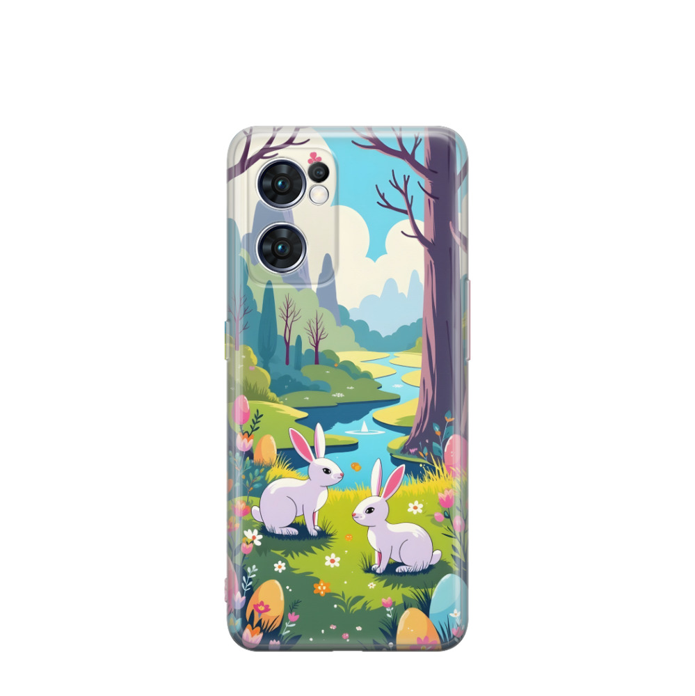 Oppo Find X5 Lite Gummi Hülle Blütenpracht und Osterträume - Blau / Gelb / Rot