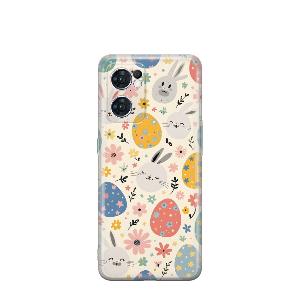 Oppo Find X5 Lite Gummi Hülle Hasenfreude - Blau / Gelb / Rot