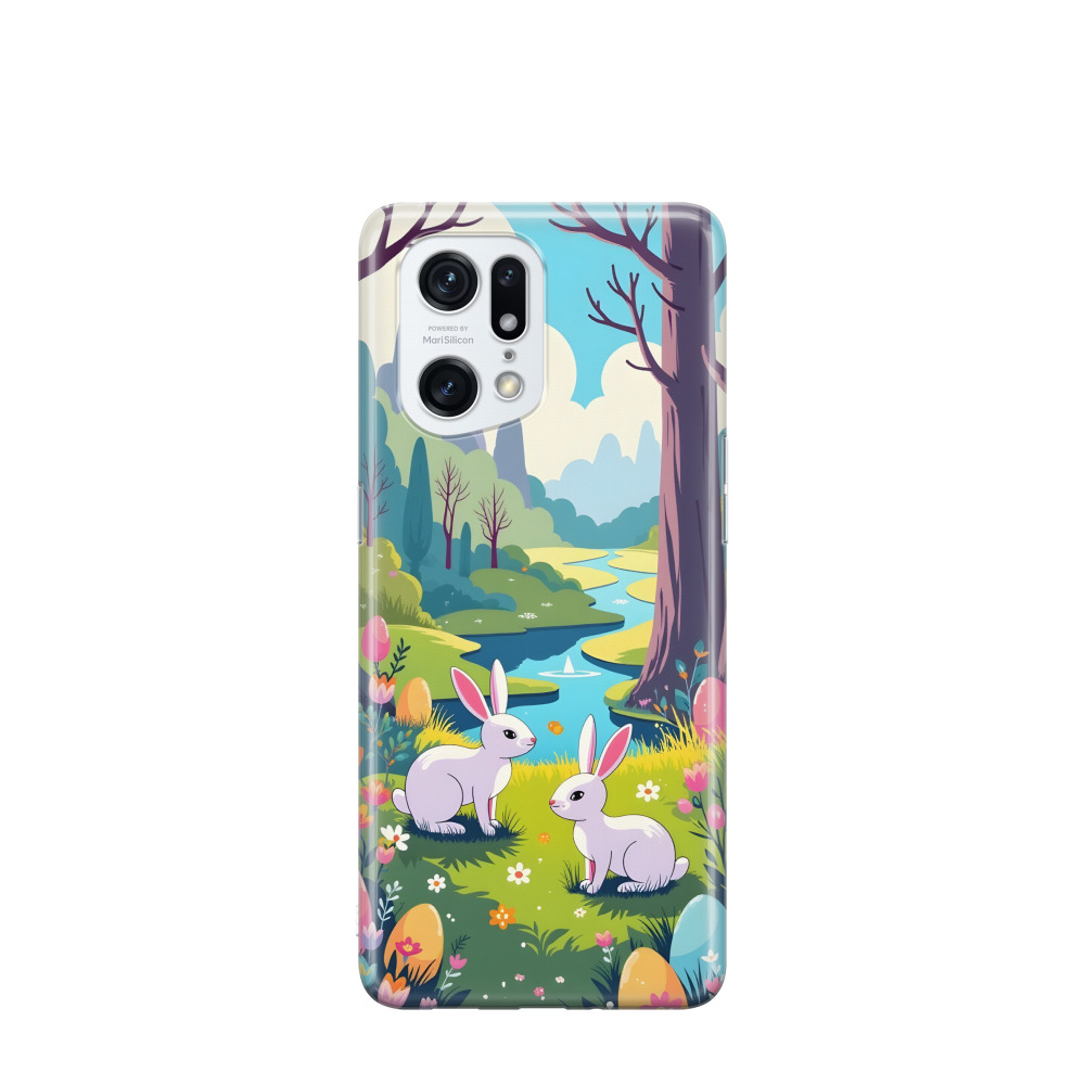 Oppo Find X5 Pro Gummi Hülle Blütenpracht und Osterträume - Blau / Gelb / Rot