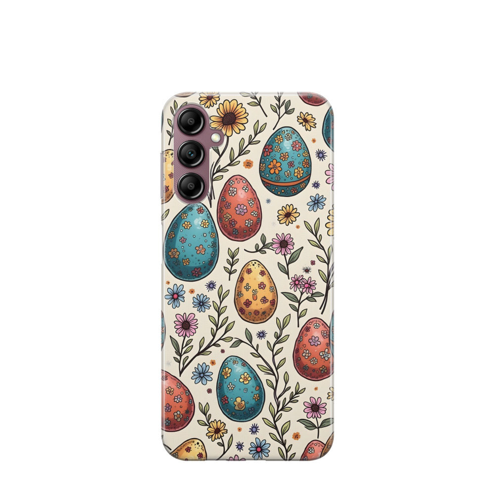 Samsung Galaxy A14 4G Gummi Hülle Blumeneier - Blau / Gelb / Rot