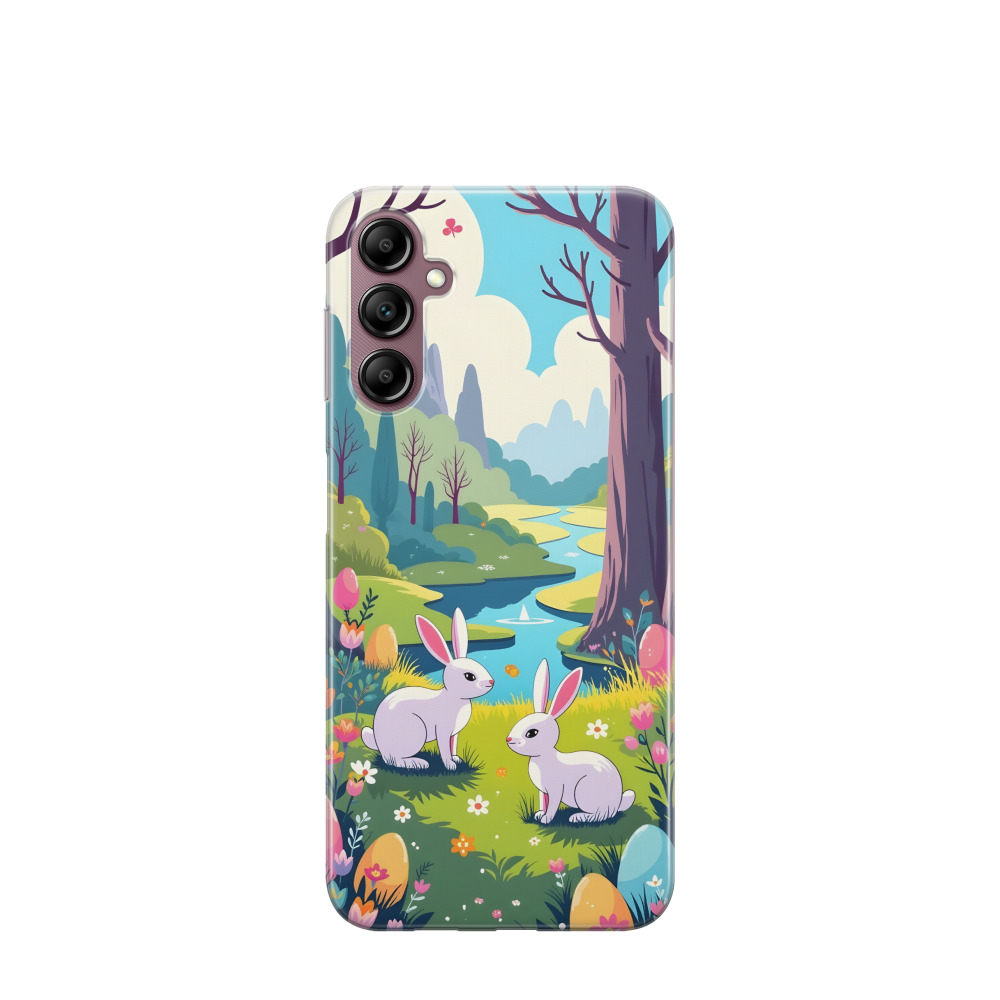 Samsung Galaxy A14 4G Gummi Hülle Blütenpracht und Osterträume - Blau / Gelb / Rot