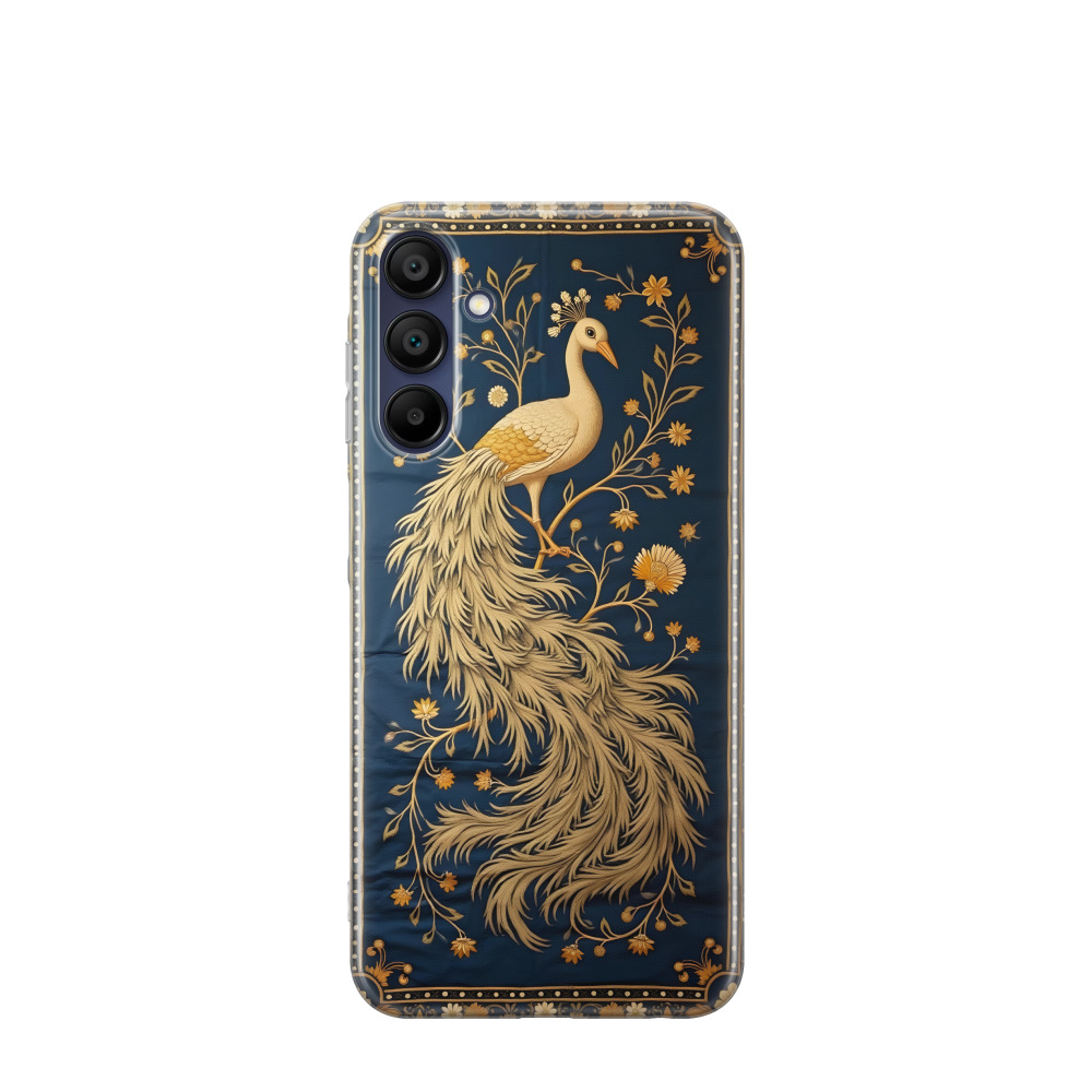 Samsung Galaxy A15 5G Gummi Hülle Goldener Pfau des Orients - Blau