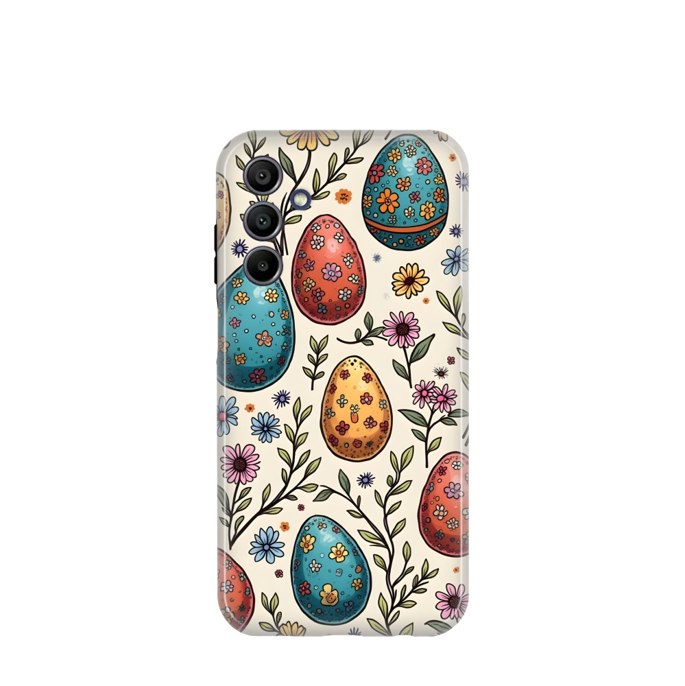 Samsung Galaxy A15 Hybrid (Kunststoff / Gummi) Hülle Blumeneier - Blau / Gelb / Rot