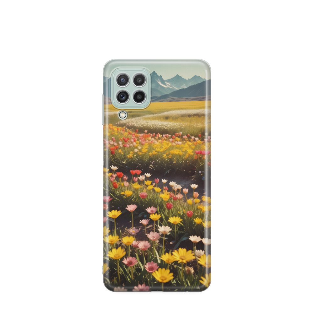 Samsung Galaxy A22 5G Gummi Hülle Bergfrühling in voller Blüte - Gelb
