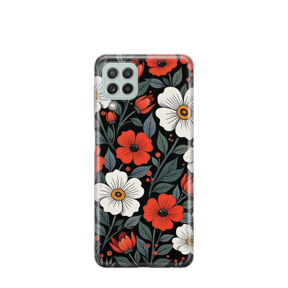 Samsung Galaxy A22 5G Gummi Hülle Blütentanz in Rot und Weiss - Versch. Farben