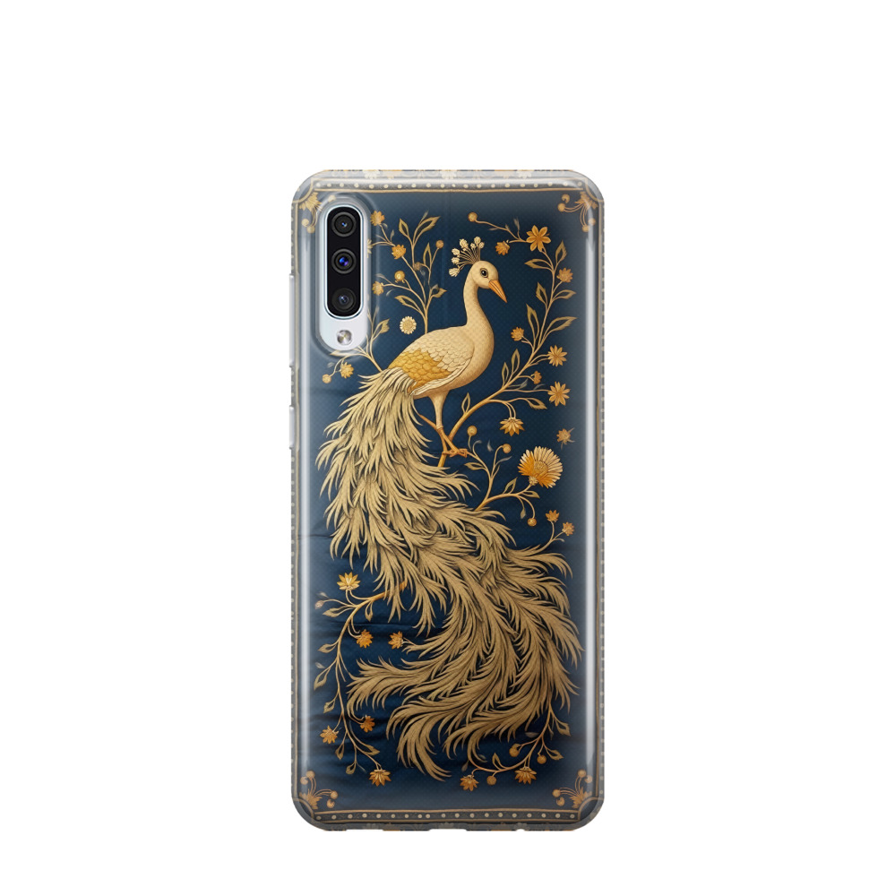 Samsung Galaxy A30s Gummi Hülle Goldener Pfau des Orients - Blau