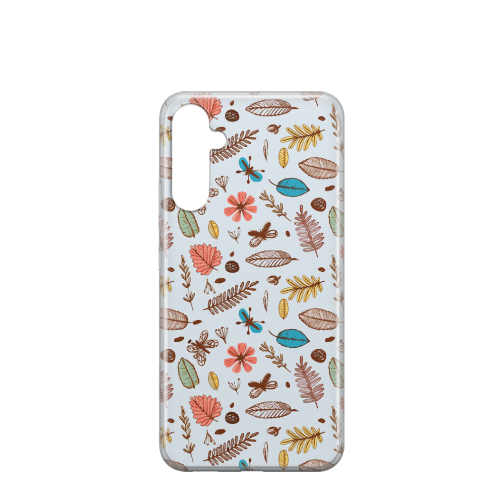 Samsung Galaxy A34 5G Gummi Hülle Herbstblüten 03 - Blau / Gelb / Rot