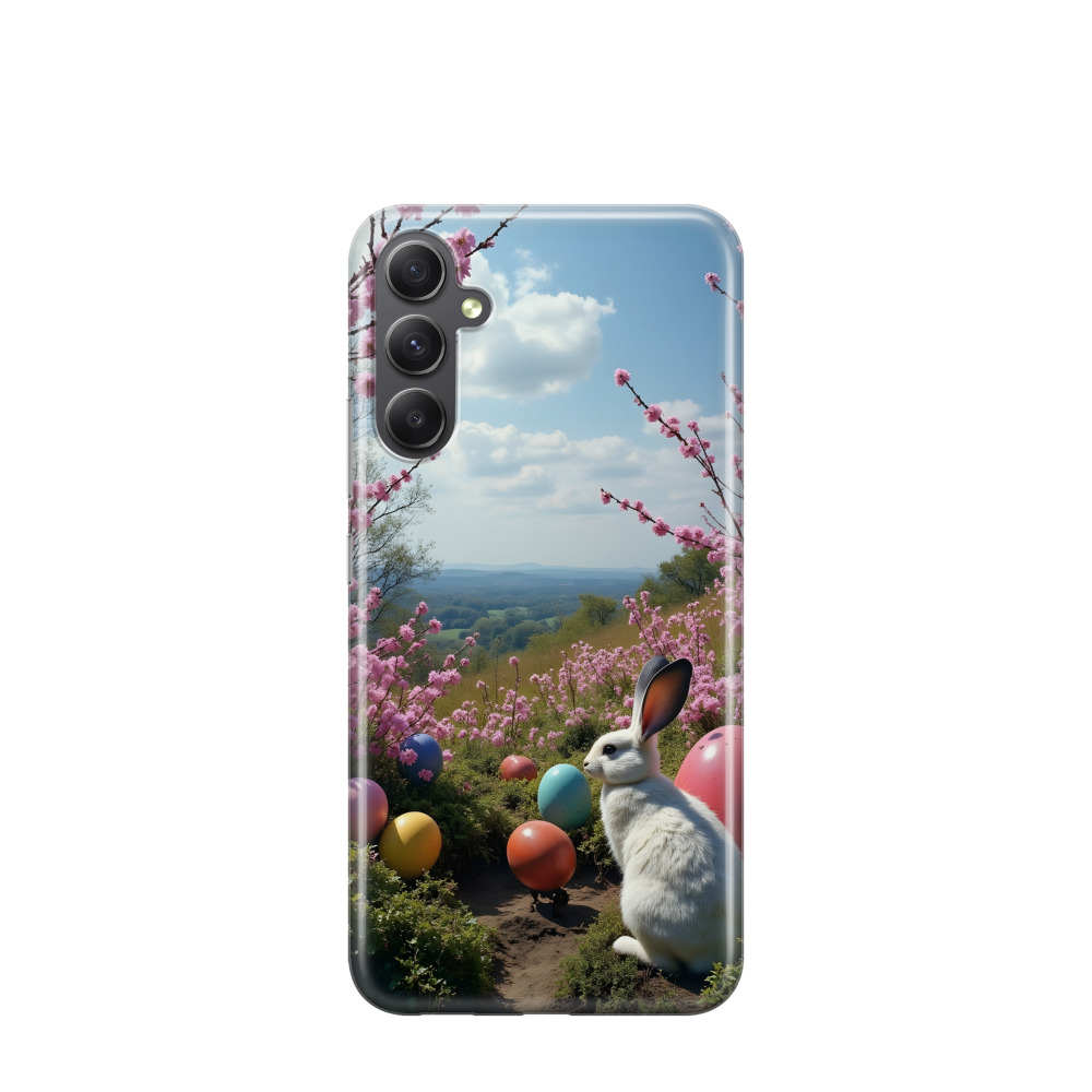 Samsung Galaxy A34 5G Gummi Hülle Osterhase im Frühling - Lila-Violett