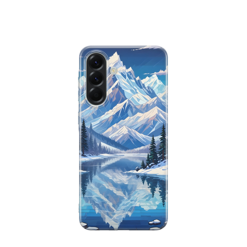Samsung Galaxy A36 Gummi Hülle Bergzauber im Eissee - Blau