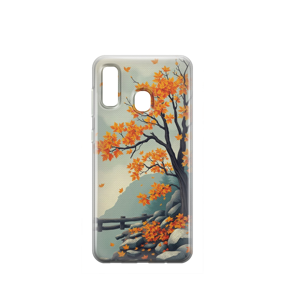 Samsung Galaxy A40 Gummi Hülle Herbstliche Felsen - Orange