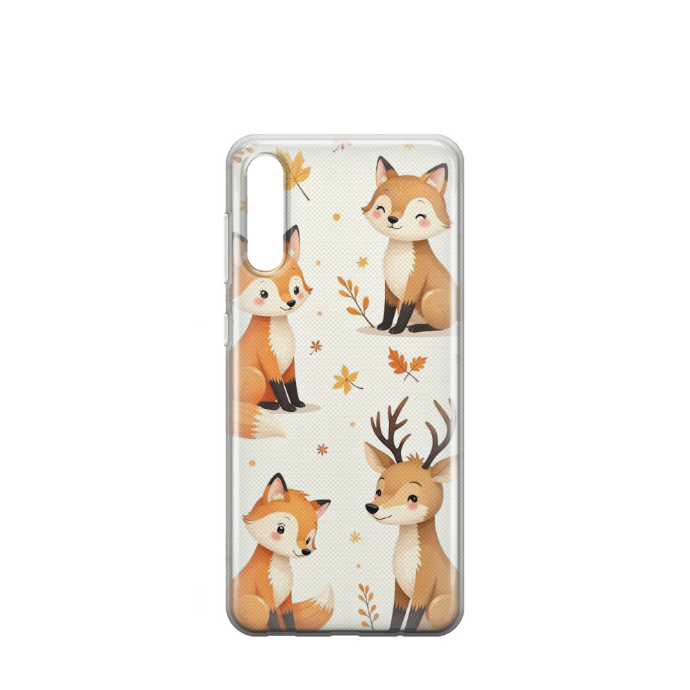 Samsung Galaxy A50 Gummi Hülle Herbstliche Waldbewohner - Orange