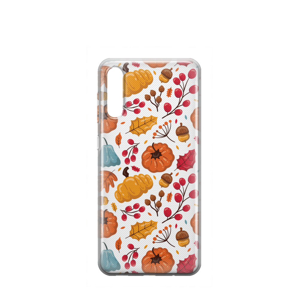 Samsung Galaxy A50 Gummi Hülle Laub und Kürbisse - Orange