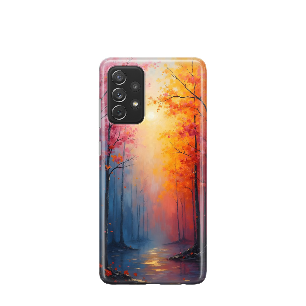 Samsung Galaxy A52 Gummi Hülle Lichterspiel im Märchenwald - Blau / Gelb / Rot