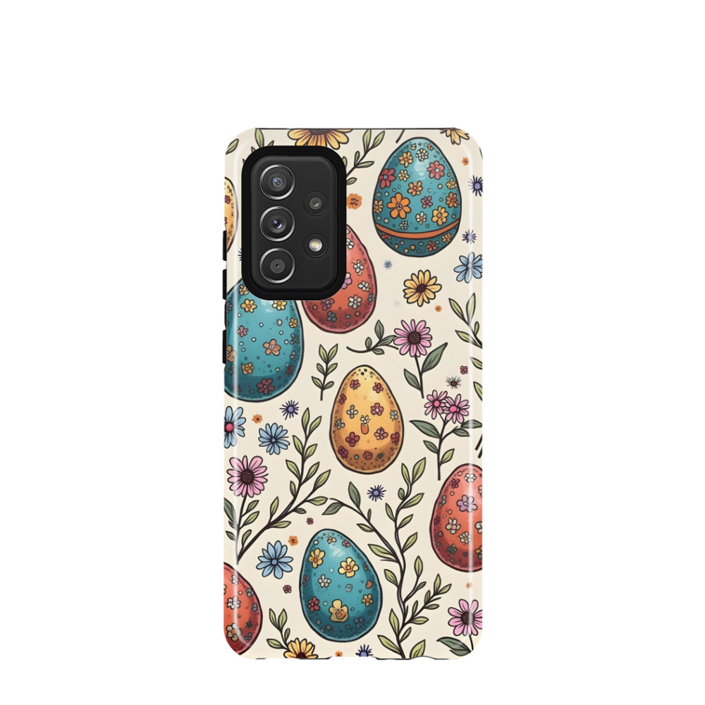 Samsung Galaxy A52 Hybrid (Kunststoff / Gummi) Hülle Blumeneier - Blau / Gelb / Rot
