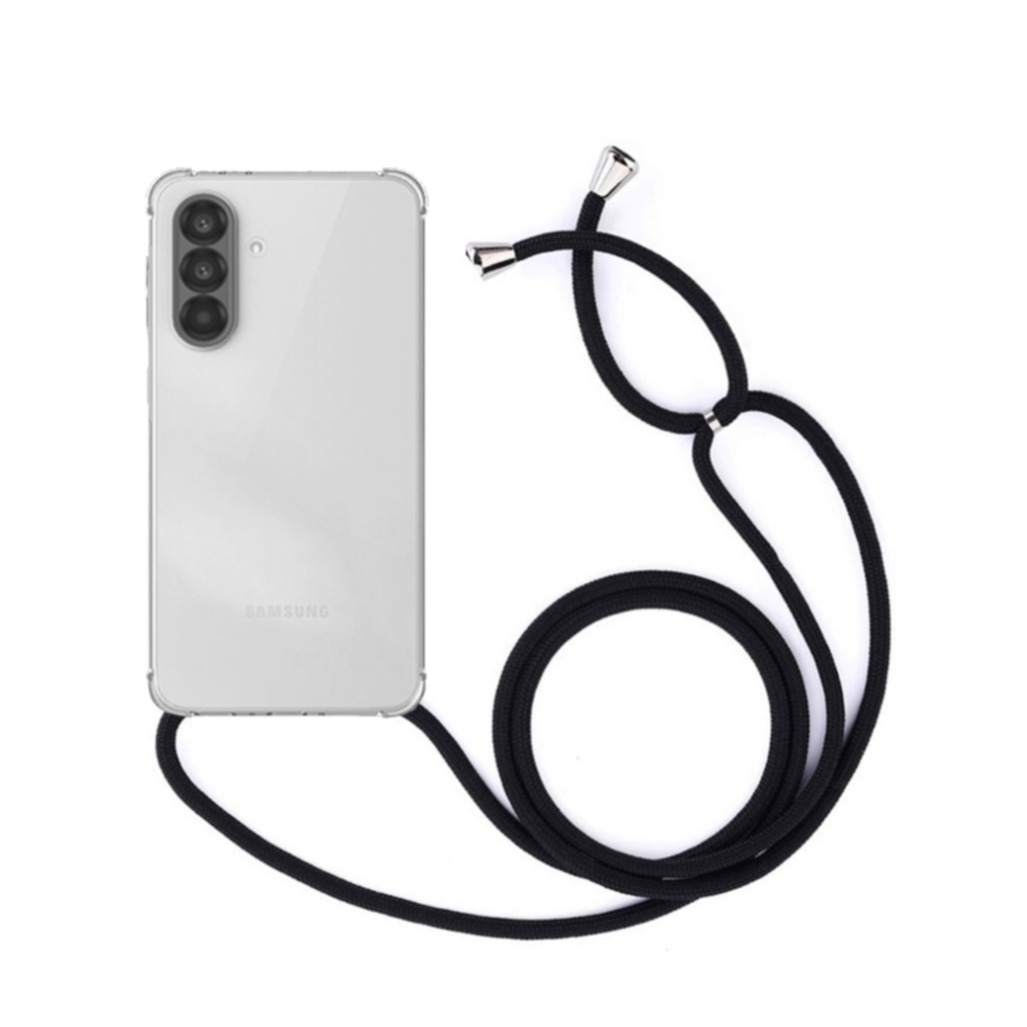 Samsung Galaxy A57 Necklace Gummi Hülle Air Cushion Fallschutz + Handykette (150cm) - Schwarz / Silber