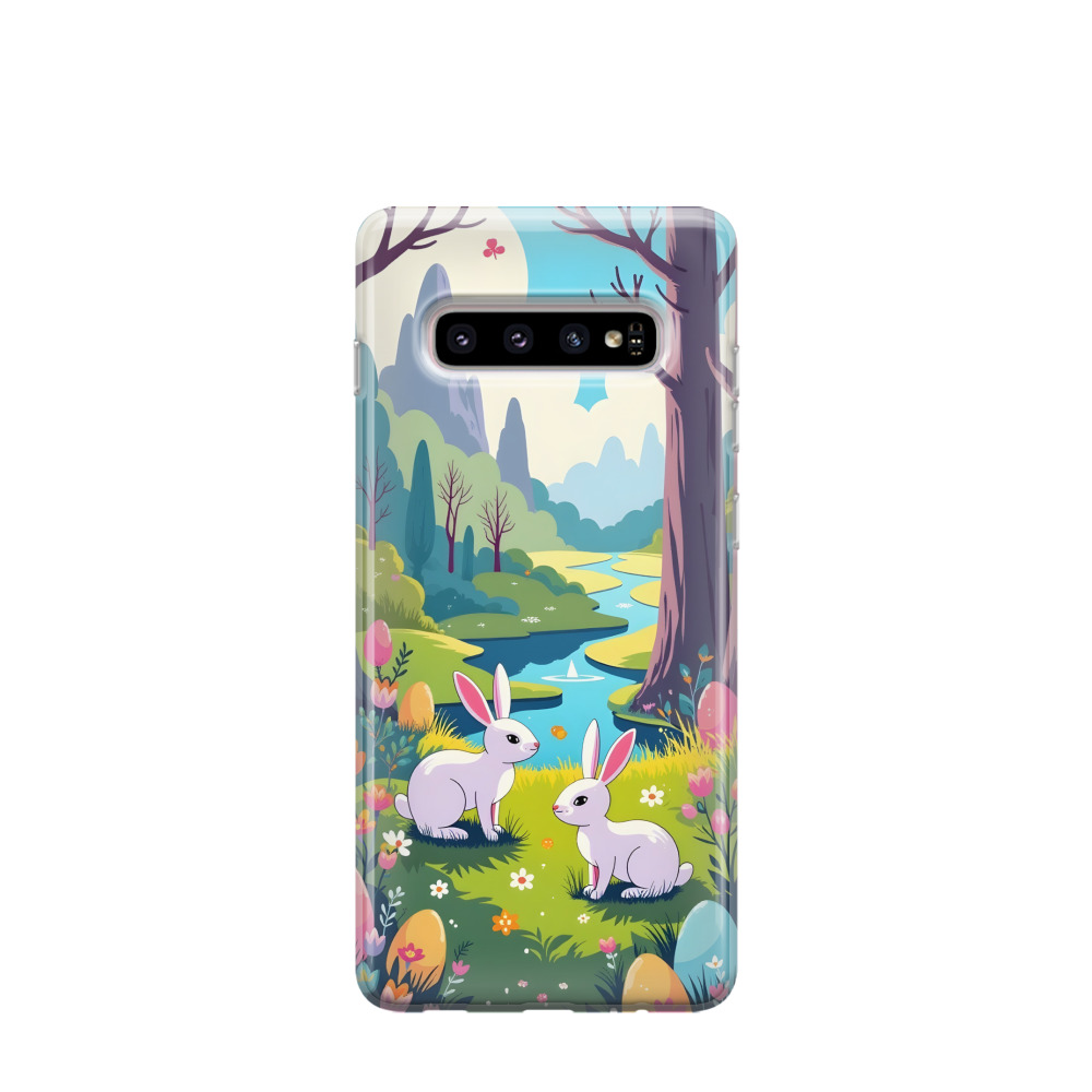Samsung Galaxy S10 Gummi Hülle Blütenpracht und Osterträume - Blau / Gelb / Rot