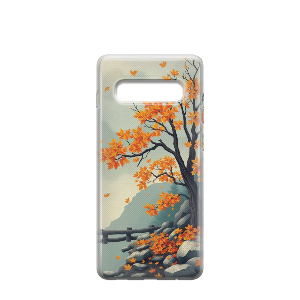 Samsung Galaxy S10 Gummi Hülle Herbstliche Felsen - Orange
