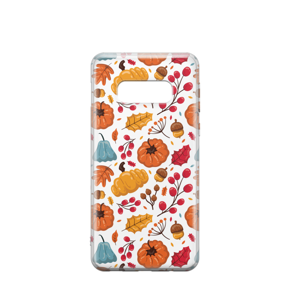 Samsung Galaxy S10e Gummi Hülle Laub und Kürbisse - Orange