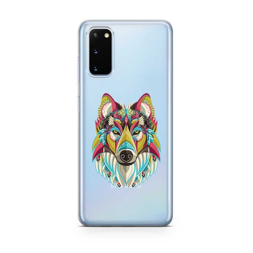 Samsung Galaxy S20 Gummi Schutzhülle Indianer Wolf - Transparent