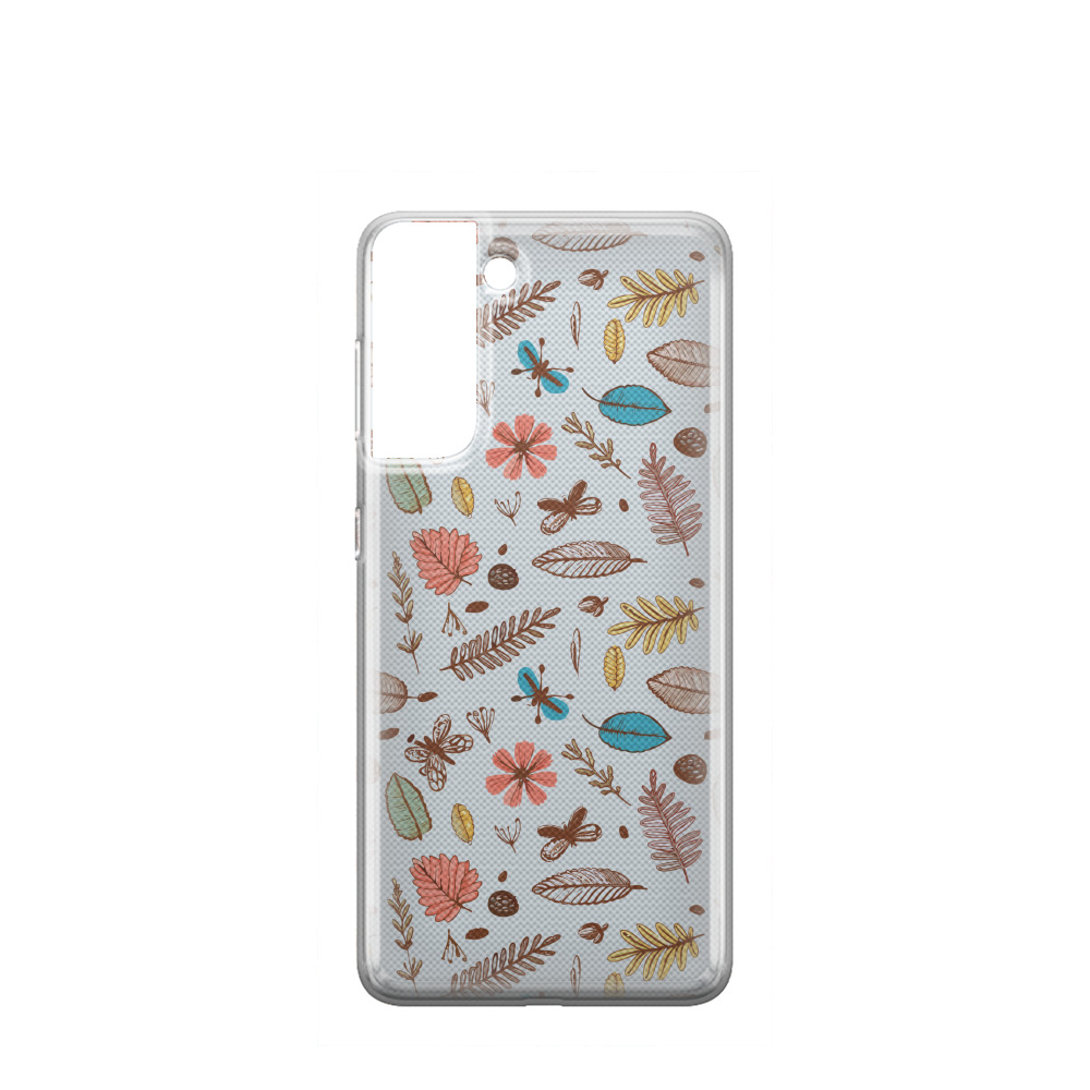 Samsung Galaxy S21 5G Gummi Hülle Herbstblüten 03 - Blau / Gelb / Rot