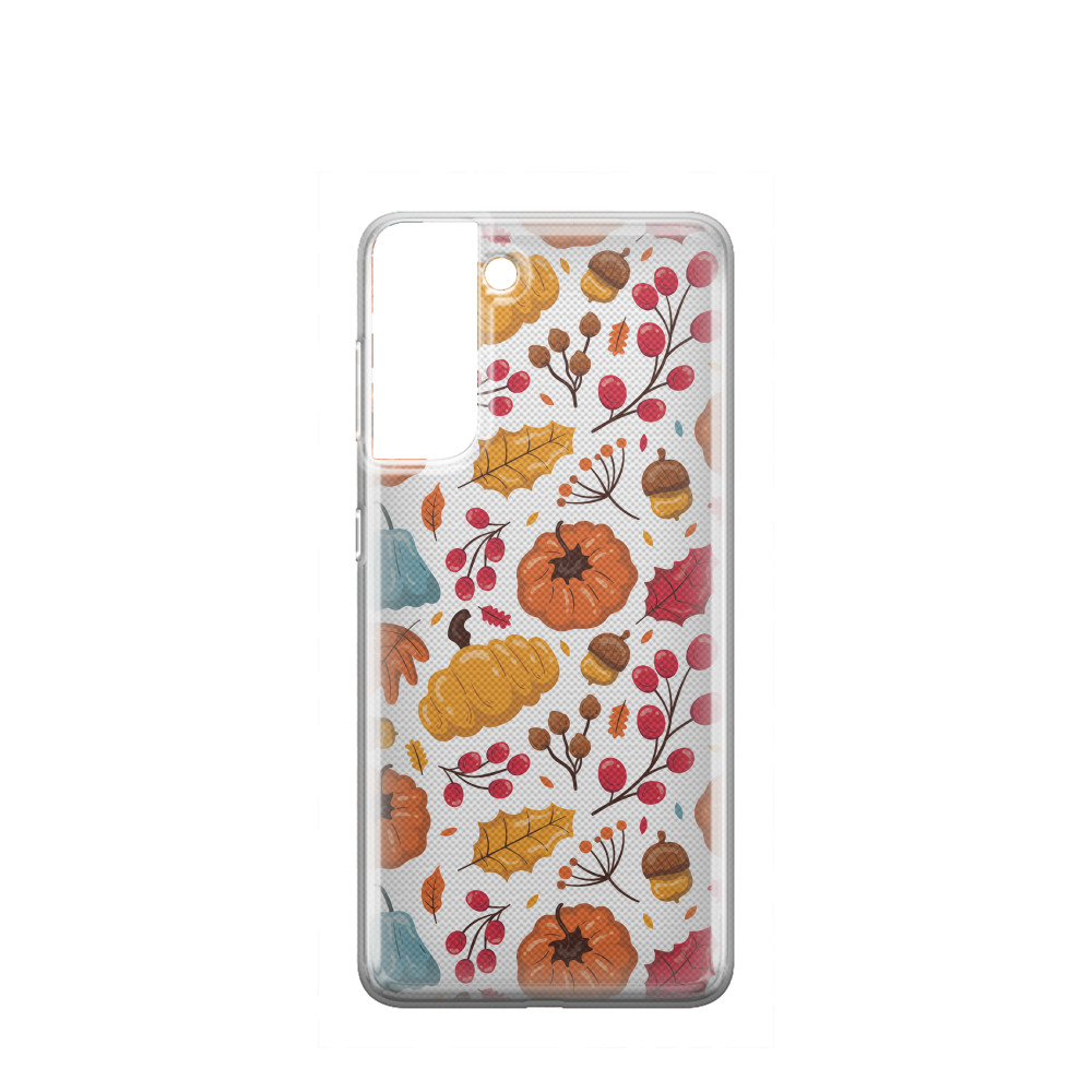 Samsung Galaxy S21 5G Gummi Hülle Laub und Kürbisse - Orange