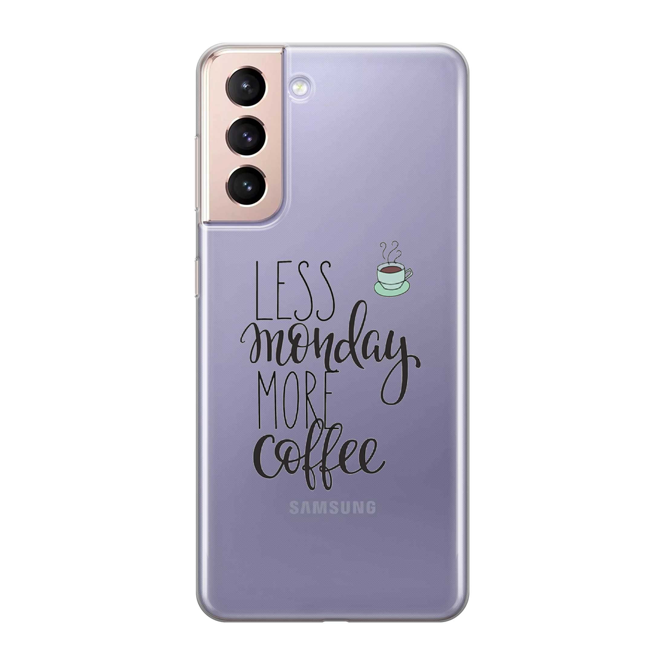 Samsung Galaxy S21 5G Gummi Schutzhülle Less Monday More Coffee - Transparent