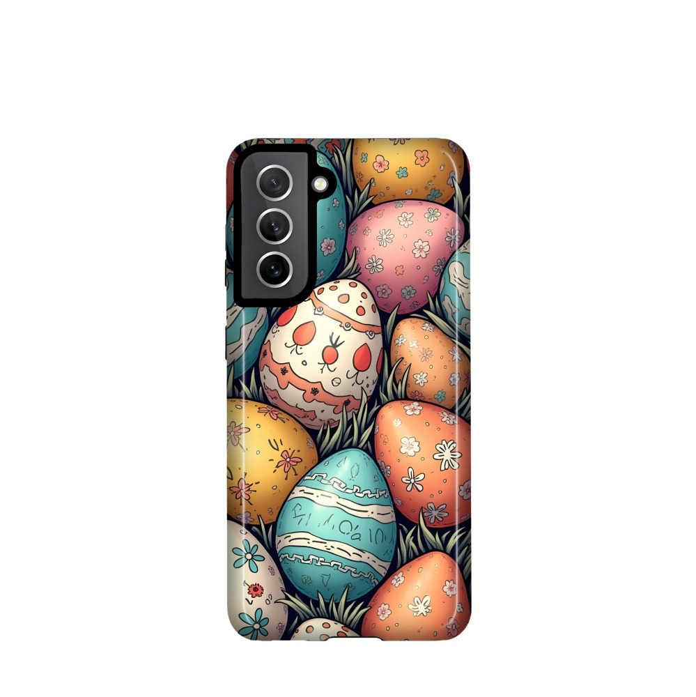 Samsung Galaxy S21 5G Hybrid (Kunststoff / Gummi) Hülle Bunte Osterpracht - Blau / Gelb / Rot