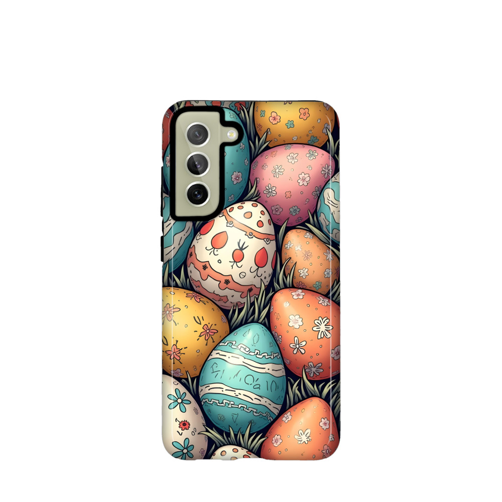 Samsung Galaxy S21 FE 5G Hybrid (Kunststoff / Gummi) Hülle Bunte Osterpracht - Blau / Gelb / Rot