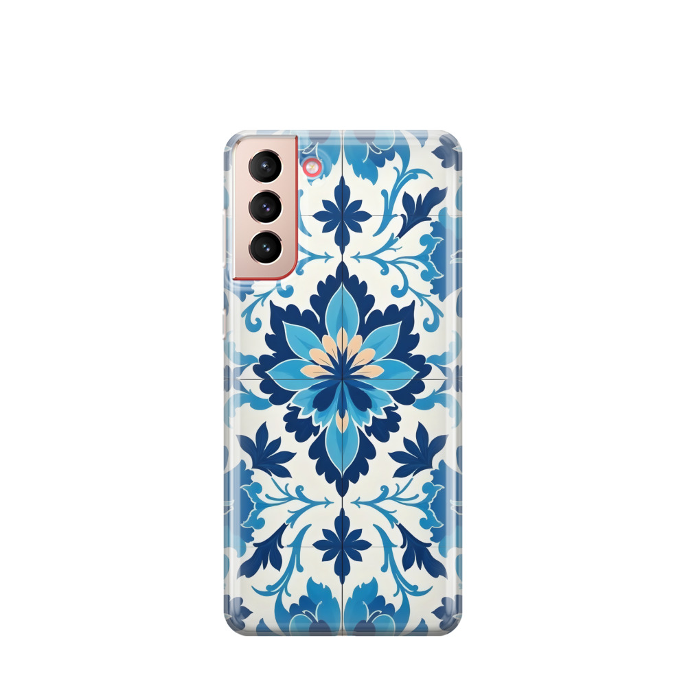 Samsung Galaxy S21 Plus 5G Gummi Hülle Majolika-Blumenpracht - Blau