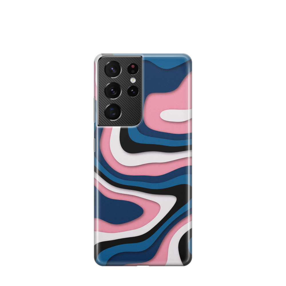 Samsung Galaxy S21 Ultra 5G Gummi Hülle Abstrakte Wellen 1 - Blau