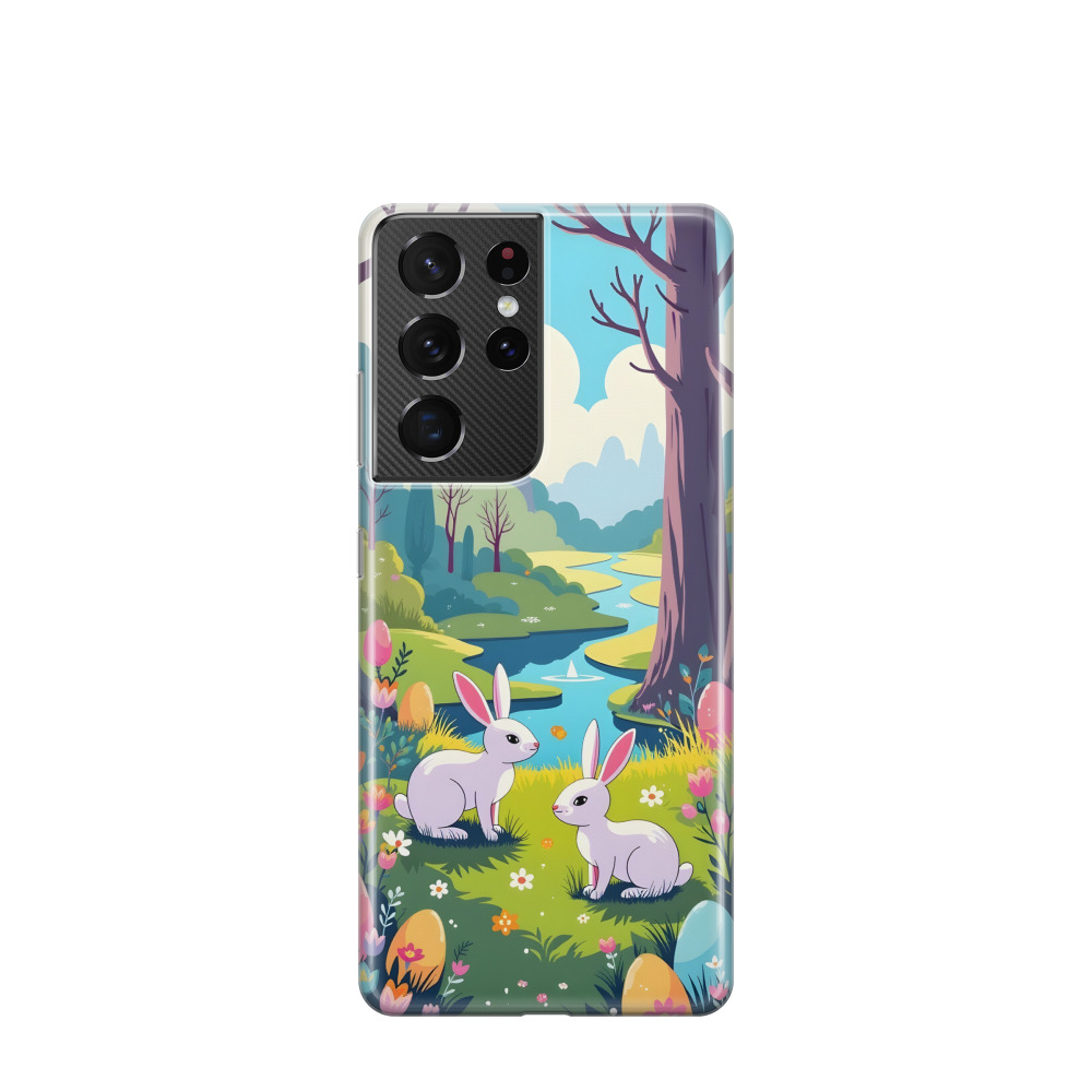 Samsung Galaxy S21 Ultra 5G Gummi Hülle Blütenpracht und Osterträume - Blau / Gelb / Rot