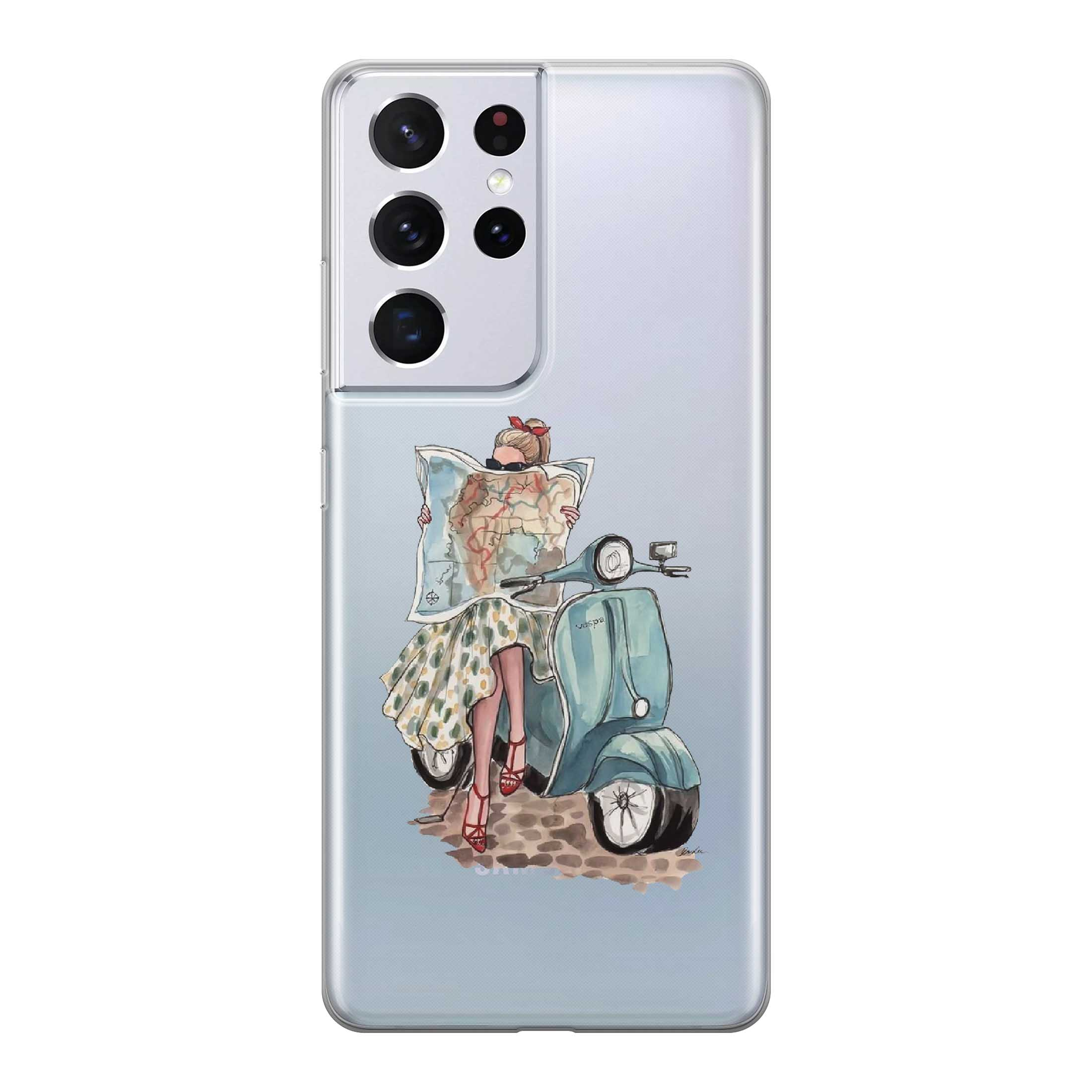 Samsung Galaxy S21 Ultra 5G Gummi Schutzhülle Travel Girl - Transparent