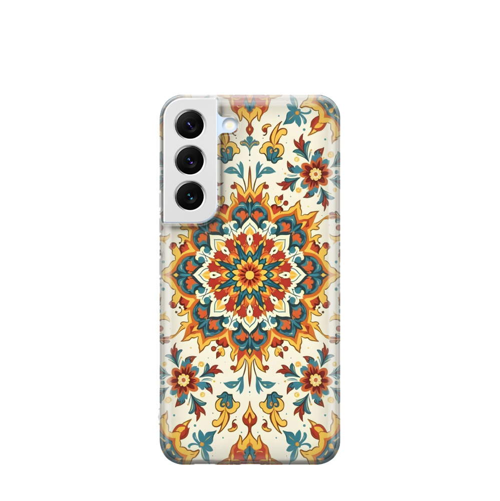 Samsung Galaxy S22 5G Gummi Hülle Majolika-Königsblüte - Blau / Gelb / Rot