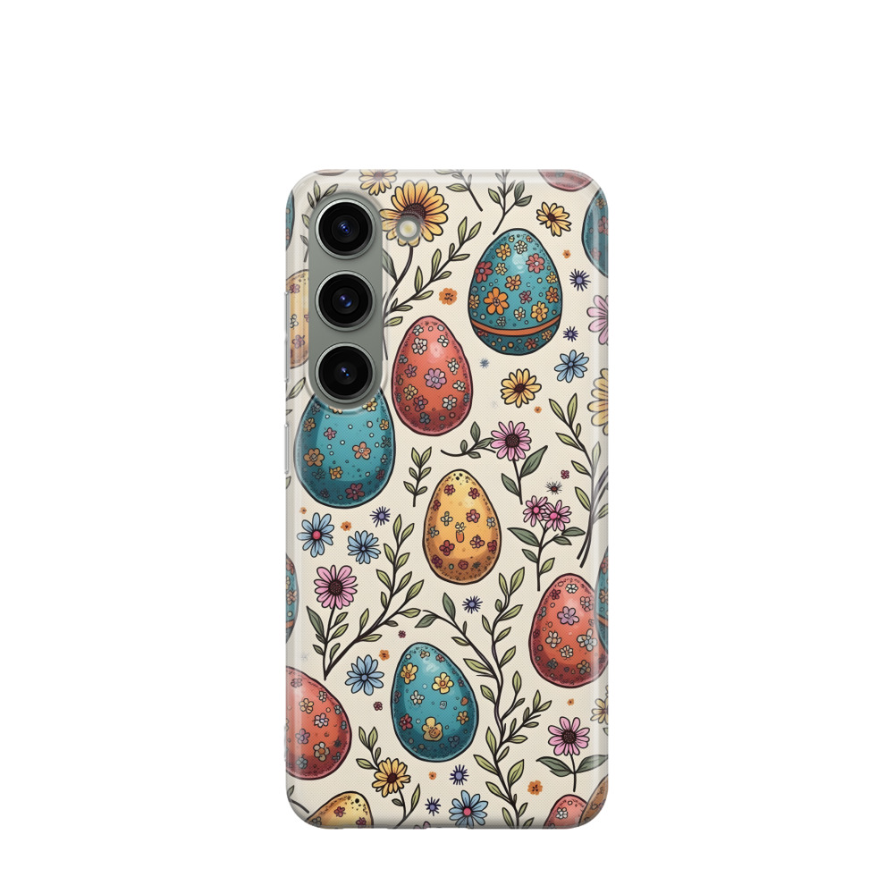 Samsung Galaxy S23 5G Gummi Hülle Blumeneier - Blau / Gelb / Rot