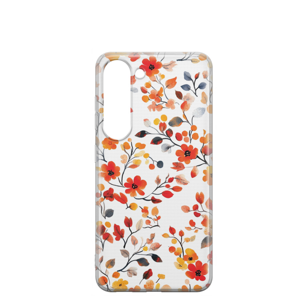 Samsung Galaxy S23 5G Gummi Hülle Herbstblüten 01 - Orange