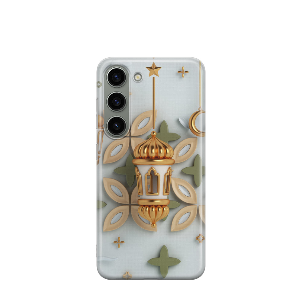 Samsung Galaxy S23 5G Gummi Hülle Ramadan-Lichter - Gold