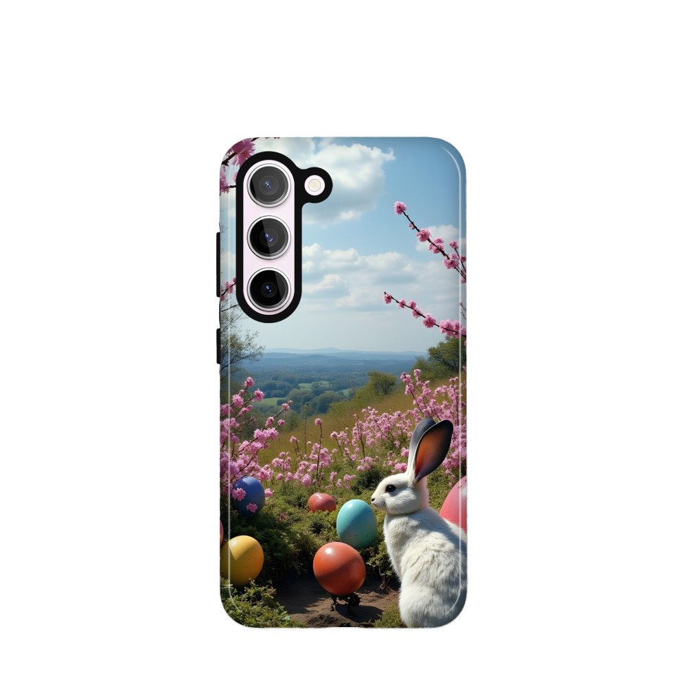 Samsung Galaxy S23 5G Hybrid (Kunststoff / Gummi) Hülle Osterhase im Frühling - Blau