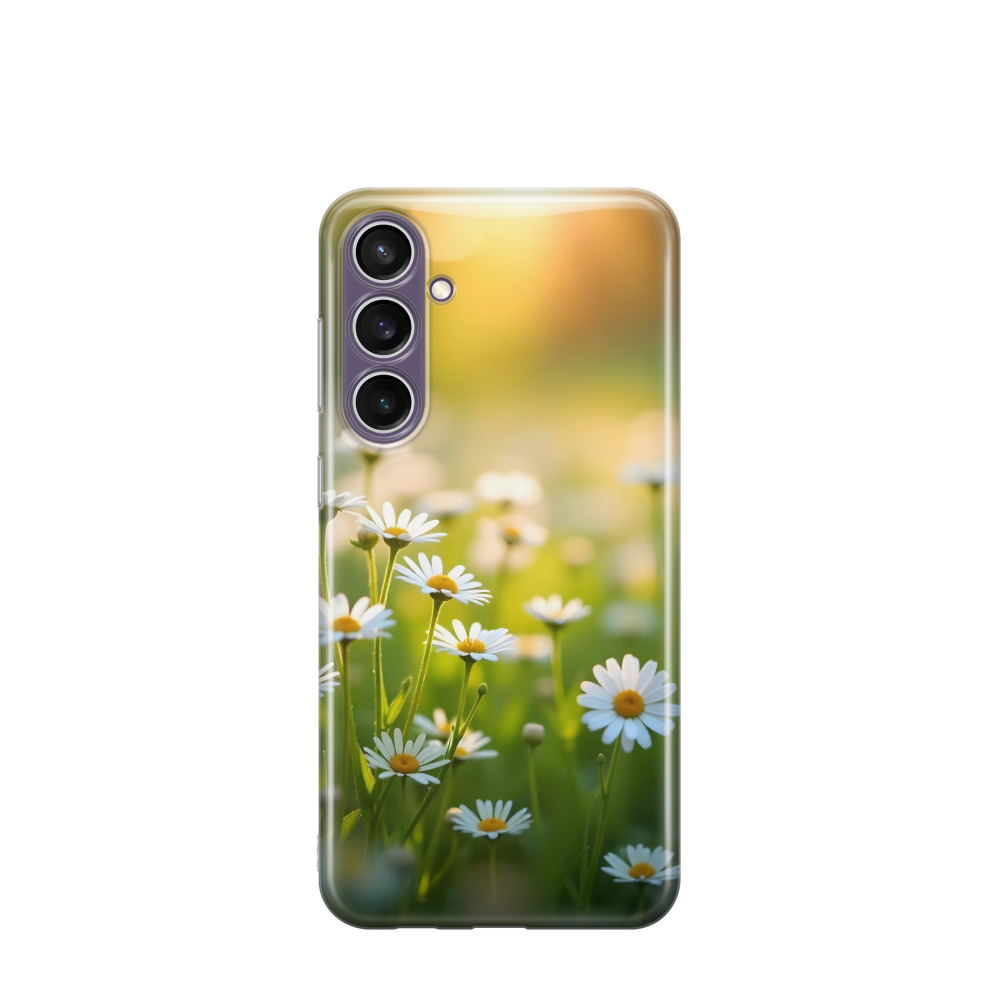 Samsung Galaxy S23 FE Gummi Hülle Gänseblümchen im Abendlicht - Grün