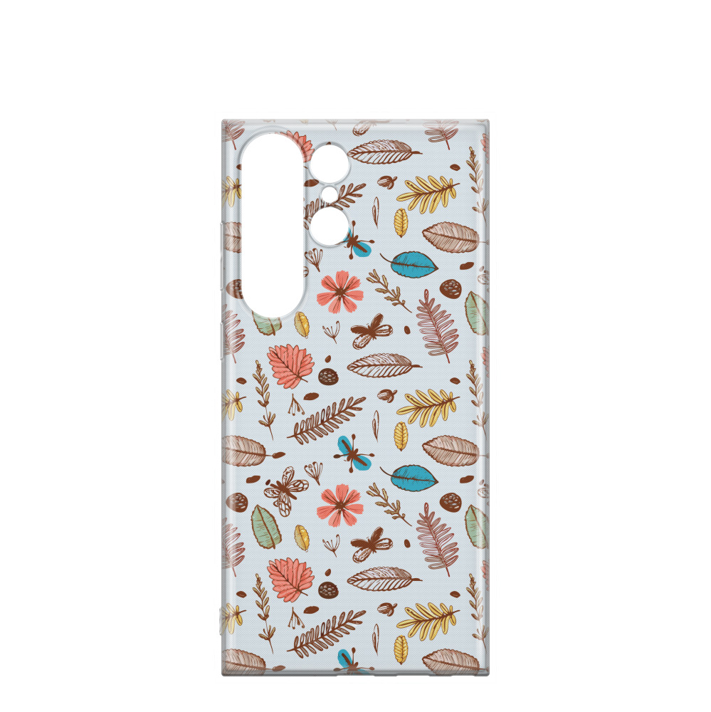 Samsung Galaxy S23 Ultra 5G Gummi Hülle Herbstblüten 03 - Blau / Gelb / Rot