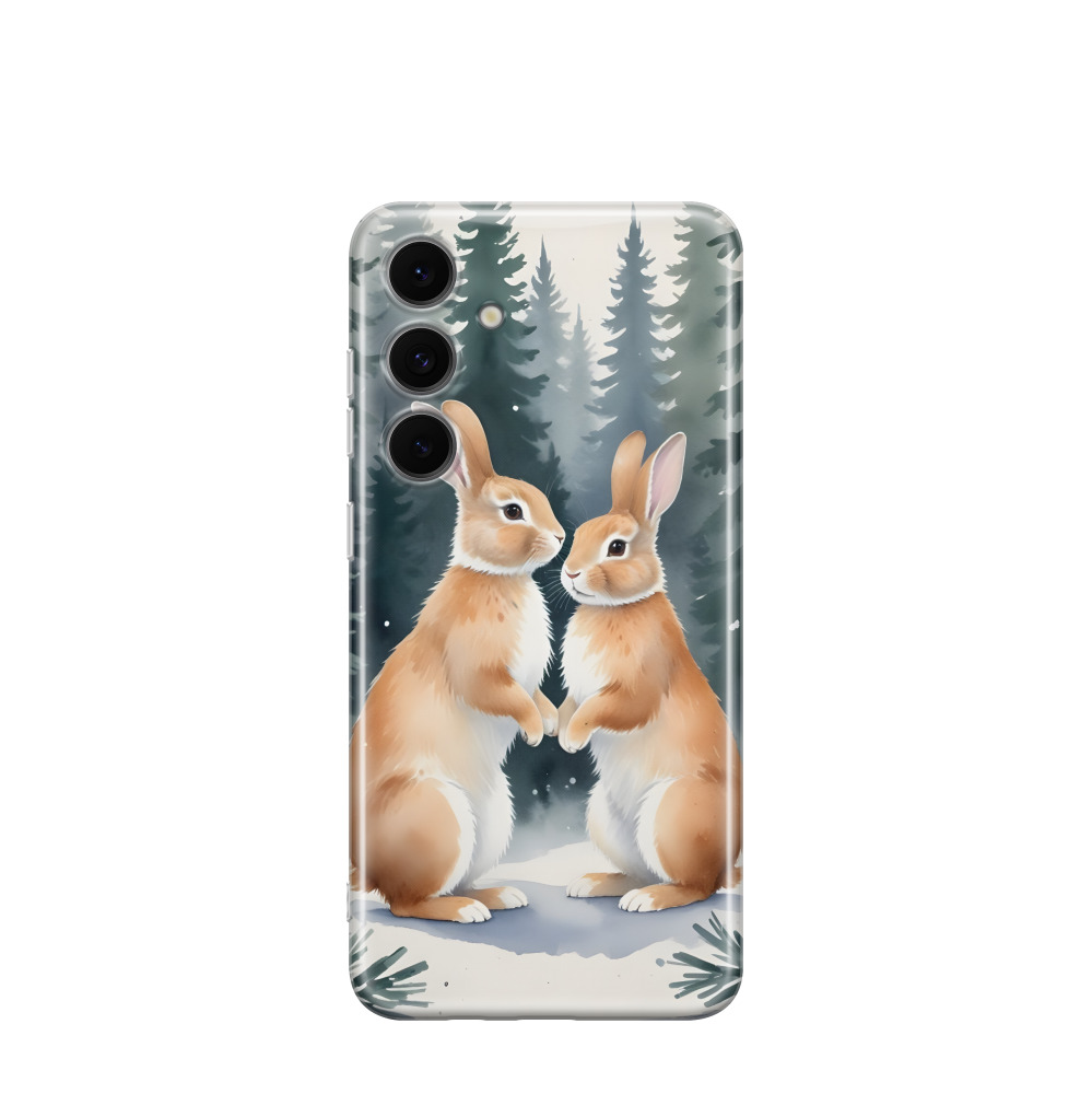 Samsung Galaxy S24 FE Gummi Hülle Fellnasen im Winterwald - Braun
