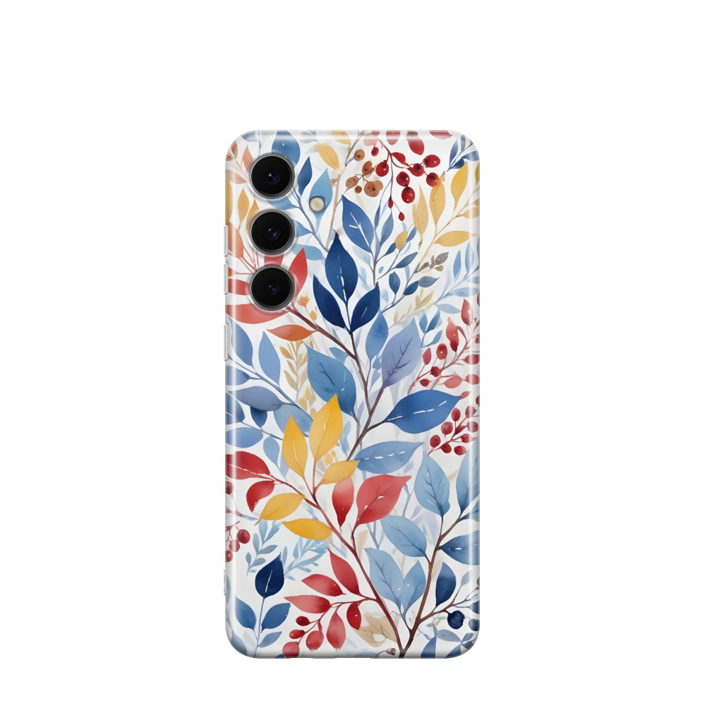 Samsung Galaxy S24 FE Gummi Hülle Frostiger Blättertanz - Blau / Gelb / Rot