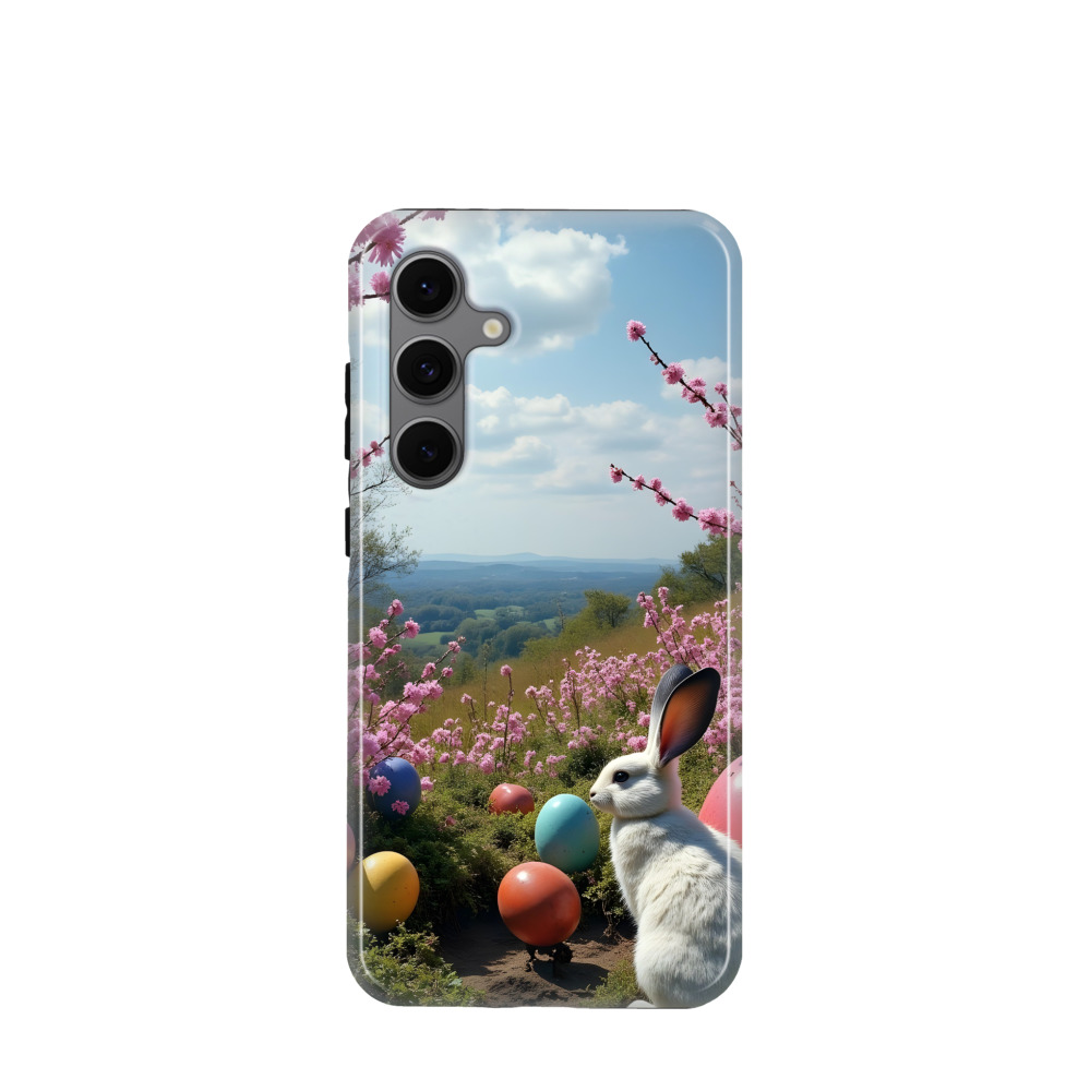 Samsung Galaxy S24 FE Hybrid (Kunststoff / Gummi) Hülle Osterhase im Frühling - Blau