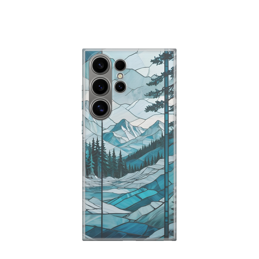 Samsung Galaxy S24 Ultra Gummi Hülle Glasiger Winterwald - Blau